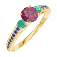 « L'ATELIER » Nº 160693Bague Or jaune 18 carats - Rubis Rond 0.3 carat - Pierres de côté Émeraude - Sertissage Saphir bleu 4.5 (42)