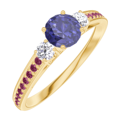 « L'ATELIER » Nº 161230Bague Or jaune 9 carats - Saphir bleu Rond 0.3 carat - Pierres de côté Diamant - Sertissage Rubis 4.5 (42)
