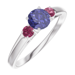 « L'ATELIER » Nº 161244Bague Or blanc 9 carats - Saphir bleu Rond 0.3 carat - Pierres de côté Rubis 4.5 (42)