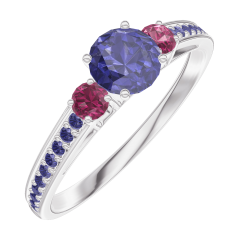 « L'ATELIER » Nº 161256Bague Or blanc 9 carats - Saphir bleu Rond 0.3 carat - Pierres de côté Rubis - Sertissage Saphir bleu 4.8 (37)