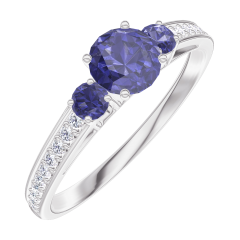 « L'ATELIER » Nº 161268Bague Or blanc 9 carats - Saphir bleu Rond 0.3 carat - Pierres de côté Saphir bleu - Sertissage Diamant 4.5 (37)