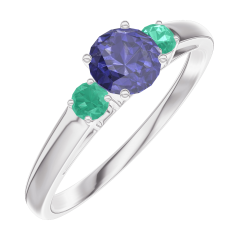 « L'ATELIER » Nº 161283Bague Or blanc 18 carats - Saphir bleu Rond 0.3 carat - Pierres de côté Émeraude 4.5 (42)