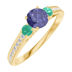 « L'ATELIER » Nº 161286Bague Or jaune 9 carats - Saphir bleu Rond 0.3 carat - Pierres de côté Émeraude - Sertissage Diamant 4.5 (37)