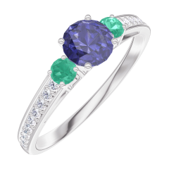 « L'ATELIER » Nº 161287Bague Or blanc 18 carats - Saphir bleu Rond 0.3 carat - Pierres de côté Émeraude - Sertissage Diamant 4.5 (42)