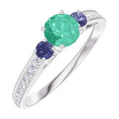« L'ATELIER » Nº161867Bague Or blanc 18 carats - Émeraude Rond 0.3 carat - Pierres de côté Saphir bleu - Sertissage Diamant 4.5 (36)