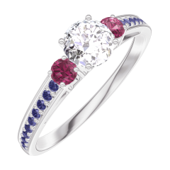 « L'ATELIER » Nº 180056Bague Or blanc 9 carats - Diamant synthétique Rond 0.3 carat - Pierres de côté Rubis - Sertissage Saphir bleu 4.5 (42)