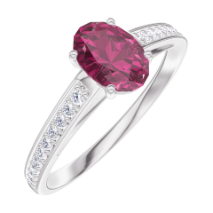 « L'ATELIER » Nº 1001962Bague Or blanc 9 carats - Rubis synthétique Ovale 0.5 carat - Sertissage Diamant synthétique 5 (4)