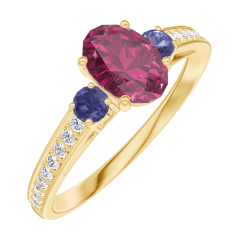 « L'ATELIER » Nº 163366Bague Or jaune 9 carats - Rubis Ovale 0.5 carat - Pierres de côté Saphir bleu - Sertissage Diamant 5 (4)