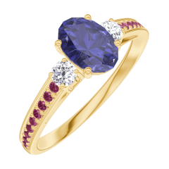 « L'ATELIER » Nº 163929Bague Or jaune 18 carats - Saphir bleu Ovale 0.5 carat - Pierres de côté Diamant - Sertissage Rubis 5 (4)