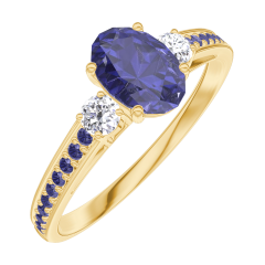 « L'ATELIER » Nº 163934Bague Or jaune 9 carats - Saphir bleu Ovale 0.5 carat - Pierres de côté Diamant - Sertissage Saphir bleu 5 (4)