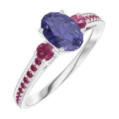 « L'ATELIER » Nº 163951Bague Or blanc 18 carats - Saphir bleu Ovale 0.5 carat - Pierres de côté Rubis - Sertissage Rubis 5 (4)
