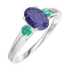 « L'ATELIER » Nº 163983Bague Or blanc 18 carats - Saphir bleu Ovale 0.5 carat - Pierres de côté Émeraude 5 (4)