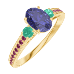 « L'ATELIER » Nº 163989Bague Or jaune 18 carats - Saphir bleu Ovale 0.5 carat - Pierres de côté Émeraude - Sertissage Rubis 5 (4)