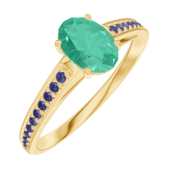 « L'ATELIER » Nº 164514Bague Or jaune 9 carats - Émeraude Ovale 0.5 carat - Sertissage Saphir bleu 5 (4)