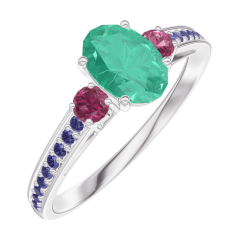 « L'ATELIER » Nº 164556Bague Or blanc 9 carats - Émeraude Ovale 0.5 carat - Pierres de côté Rubis - Sertissage Saphir bleu 5 (4)