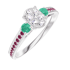 « L'ATELIER » Nº 209992Bague Or blanc 9 carats - Cluster de diamants naturels Ovale équivalent 0.5 - Pierres de côté Émeraude - Sertissage Rubis 5 (4)