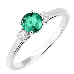 « L'ATELIER » Nº 1002694Bague Or blanc 9 carats - Émeraude synthétique Rond 0.5 carat - Pierres de côté Diamant synthétique 4.5 (21)