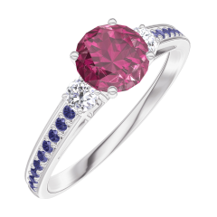 « L'ATELIER » Nº 163036Bague Or blanc 9 carats - Rubis Rond 0.5 carat - Pierres de côté Diamant - Sertissage Saphir bleu 4.5 (21)