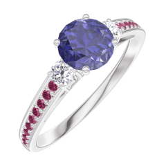 « L'ATELIER » Nº 163631Bague Or blanc 18 carats - Saphir bleu Rond 0.5 carat - Pierres de côté Diamant - Sertissage Rubis 4.5 (16)