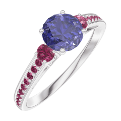 « L'ATELIER » Nº 163651Bague Or blanc 18 carats - Saphir bleu Rond 0.5 carat - Pierres de côté Rubis - Sertissage Rubis 4.5 (21)