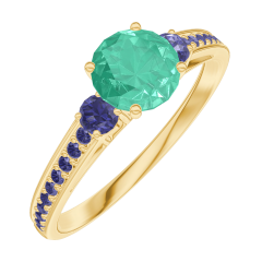 « L'ATELIER » Nº164274Bague Or jaune 9 carats - Émeraude Rond 0.5 carat - Pierres de côté Saphir bleu - Sertissage Saphir bleu 4.5 (16)