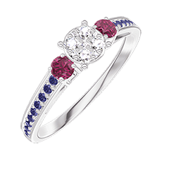 « L'ATELIER » Nº 209656Bague Or blanc 9 carats - Cluster de diamants naturels Rond équivalent 0.5 - Pierres de côté Rubis - Sertissage Saphir bleu 4.5 (21)