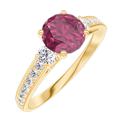 « L'ATELIER » Nº 1003175Bague Or jaune 18 carats - Rubis synthétique Rond 0.7 carat - Pierres de côté Diamant synthétique - Sertissage Diamant synthétique 4.9 (7)