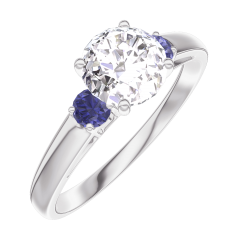 « L'ATELIER » Nº 164864Bague Or blanc 9 carats - Diamant Rond 0.7 carat - Pierres de côté Saphir bleu 4.9 (7)