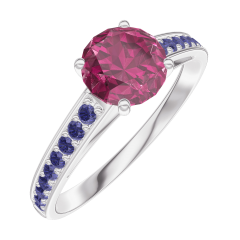 « L'ATELIER » Nº 165416Bague Or blanc 9 carats - Rubis Rond 0.7 carat - Sertissage Saphir bleu 4.9 (7)