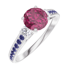 « L'ATELIER » Nº 165436Bague Or blanc 9 carats - Rubis Rond 0.7 carat - Pierres de côté Diamant - Sertissage Saphir bleu 4.9 (7)