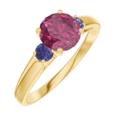 « L'ATELIER » Nº 165462Bague Or jaune 9 carats - Rubis Rond 0.7 carat - Pierres de côté Saphir bleu 5 (7)