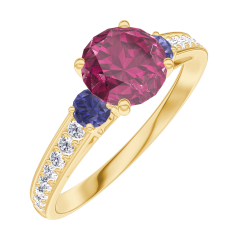 « L'ATELIER » Nº 165465Bague Or jaune 18 carats - Rubis Rond 0.7 carat - Pierres de côté Saphir bleu - Sertissage Diamant 4.9 (7)