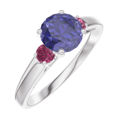 « L'ATELIER » Nº 166044Bague Or blanc 9 carats - Saphir bleu Rond 0.7 carat - Pierres de côté Rubis 4.9 (7)