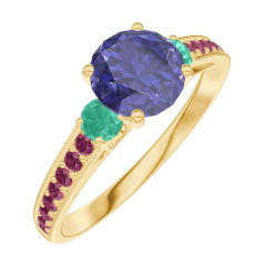 « L'ATELIER » Nº 166089Bague Or jaune 18 carats - Saphir bleu Rond 0.7 carat - Pierres de côté Émeraude - Sertissage Rubis 4.9 (7)