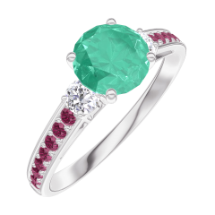 « L'ATELIER » Nº 166631Bague Or blanc 18 carats - Émeraude Rond 0.7 carat - Pierres de côté Diamant - Sertissage Rubis 4.9 (7)