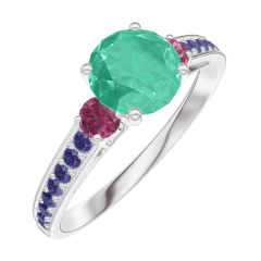 « L'ATELIER » Nº 166656Bague Or blanc 9 carats - Émeraude Rond 0.7 carat - Pierres de côté Rubis - Sertissage Saphir bleu 4.9 (7)