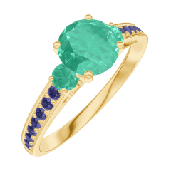 « L'ATELIER » Nº166693Bague Or jaune 18 carats - Émeraude Rond 0.7 carat - Pierres de côté Émeraude - Sertissage Saphir bleu 5 (6)