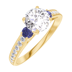 « L'ATELIER » Nº 184865Bague Or jaune 18 carats - Diamant synthétique Rond 0.7 carat - Pierres de côté Saphir bleu - Sertissage Diamant synthétique 4.9 (7)
