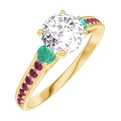 « L'ATELIER » Nº184890Bague Or jaune 9 carats - Diamant synthétique Rond 0.7 carat - Pierres de côté Émeraude - Sertissage Rubis 5 (6)