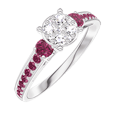 « L'ATELIER » Nº 210251Bague Or blanc 18 carats - Cluster de diamants naturels Rond équivalent 0.7 - Pierres de côté Rubis - Sertissage Rubis 4.9 (7)