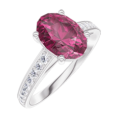 « L'ATELIER » Nº 1004842Bague Or blanc 9 carats - Rubis synthétique Ovale 1 carat - Sertissage Diamant synthétique 4.7 (10)
