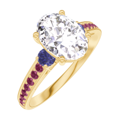 « L'ATELIER » Nº 167570Bague Or jaune 9 carats - Diamant Ovale 1 carat - Pierres de côté Saphir bleu - Sertissage Rubis 4.7 (10)