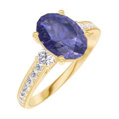 « L'ATELIER » Nº 168726Bague Or jaune 9 carats - Saphir bleu Ovale 1 carat - Pierres de côté Diamant - Sertissage Diamant 4.7 (9)