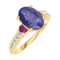 « L'ATELIER » Nº168745Bague Or jaune 18 carats - Saphir bleu Ovale 1 carat - Pierres de côté Rubis - Sertissage Diamant 4.7 (9)