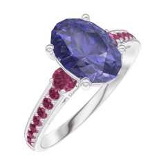 « L'ATELIER » Nº 168751Bague Or blanc 18 carats - Saphir bleu Ovale 1 carat - Pierres de côté Rubis - Sertissage Rubis 4.7 (10)