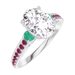 « L'ATELIER » Nº 187591Bague Or blanc 18 carats - Diamant synthétique Ovale 1 carat - Pierres de côté Émeraude - Sertissage Rubis 4.7 (10)
