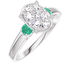 « L'ATELIER » Nº 211184Bague Or blanc 9 carats - Cluster de diamants naturels Ovale équivalent 1 - Pierres de côté Émeraude 4.7 (10)