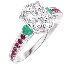 « L'ATELIER » Nº 211191Bague Or blanc 18 carats - Cluster de diamants naturels Ovale équivalent 1 - Pierres de côté Émeraude - Sertissage Rubis 4.7 (10)