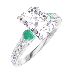 « L'ATELIER » Nº 167488Bague Or blanc 9 carats - Diamant Rectangle 1 carat - Pierres de côté Émeraude - Sertissage Diamant 4.4 (8)