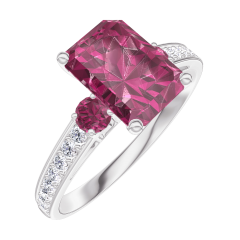 « L'ATELIER » Nº 168048Bague Or blanc 9 carats - Rubis Rectangle 1 carat - Pierres de côté Rubis - Sertissage Diamant 4.6 (5)